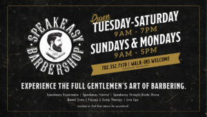 Speakeasy Barbershop Experience the full gentlemen's art of barbering Speakeasy Barbershop LV Menu Speakeasy experience / $110 Speakeasy shave / $65 Speakeasy haircut / $55 Beard Trim / $30 (clippers only) Line up’s / $11 (clippers and straight razor) Facial / $25 Scalp therapy $25 Book Now